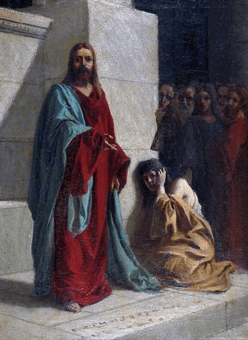 No Evangelho é dito: “Naquele tempo, 1 Jesus foi para o monte das Oliveiras. 2 De madrugada, voltou de novo ao Templo. Todo o povo se reuniu em volta dele. Sentando-se, começou a ensiná-los. 3 Entretanto, os mestres da Lei e os fariseus trouxeram uma mulher surpreendida em adultério. Colocando-a no meio deles, 4 disseram a Jesus: “Mestre, esta mulher foi surpreendida em flagrante adultério. 5 Moisés na Lei mandou apedrejar tais mulheres. Que dizes tu?” 6 Perguntavam isso para experimentar Jesus e para terem motivo de o acusar. Mas Jesus, inclinando-se, começou a escrever com o dedo no chão. 7 Como persistissem em interrogá-lo, Jesus ergueu-se e disse: “Quem dentre vós não tiver pecado, seja o primeiro a atirar-lhe uma pedra”. 8 E tornando a inclinar-se, continuou a escrever no chão. 9 E eles, ouvindo o que Jesus falou, foram saindo um a um, a começar pelos mais velhos; e Jesus ficou sozinho, com a mulher que estava lá, no meio do povo. 10 Então Jesus se levantou e disse: “Mulher, onde estão eles? Ninguém te condenou?” 11 Ela respondeu: “Ninguém, Senhor”. Então Jesus lhe disse: “Eu também não te condeno. Podes ir, e de agora em diante não peques mais”. (Jo 8,1-11)